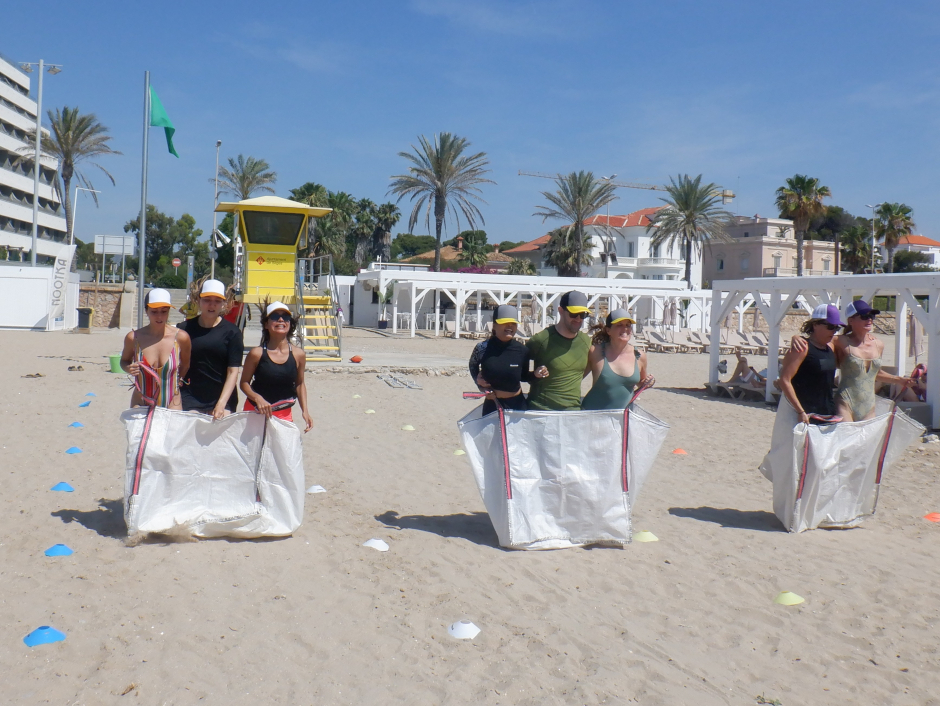 Disponemos de una zona deportiva habilitada para campo de voleibol y actividades en la arena. Es una zona inmejorable para el inicio o desarrollo de cualquier actividad, ya sean eventos, cursos o simplemente excursiones por el litoral de Sitges y sus calas.